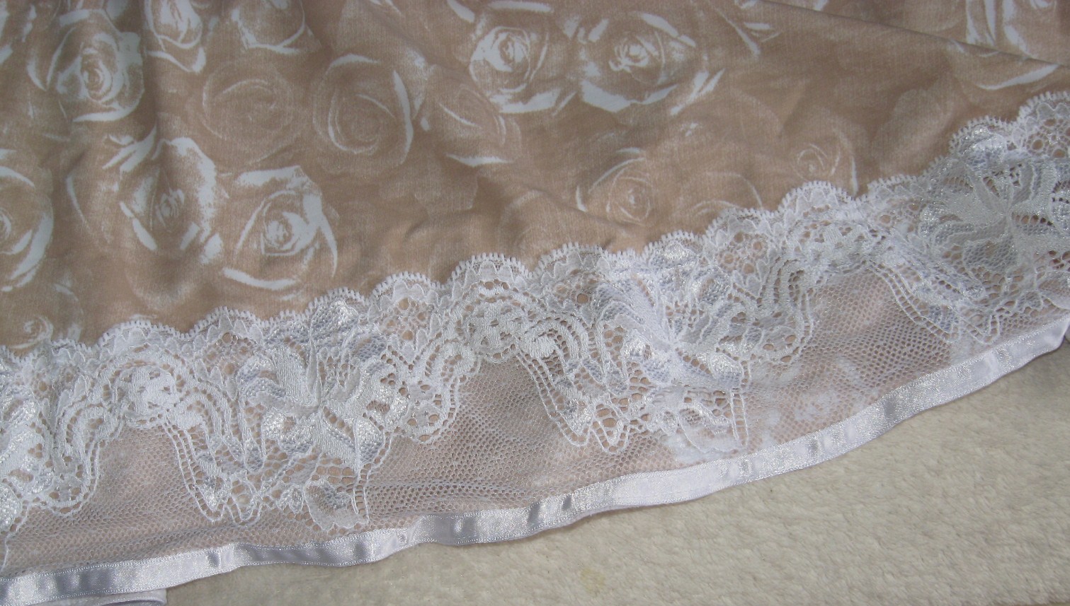 Camisola em tecido com detalhes de renda trabalhada na barra e busto, super delicada.